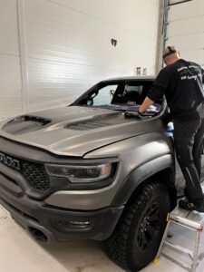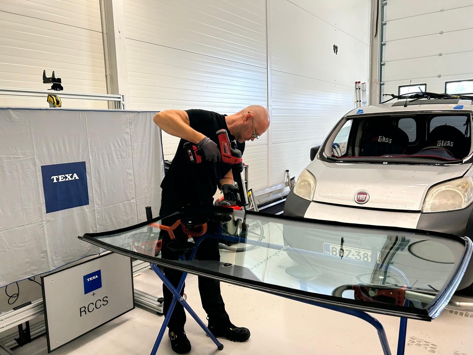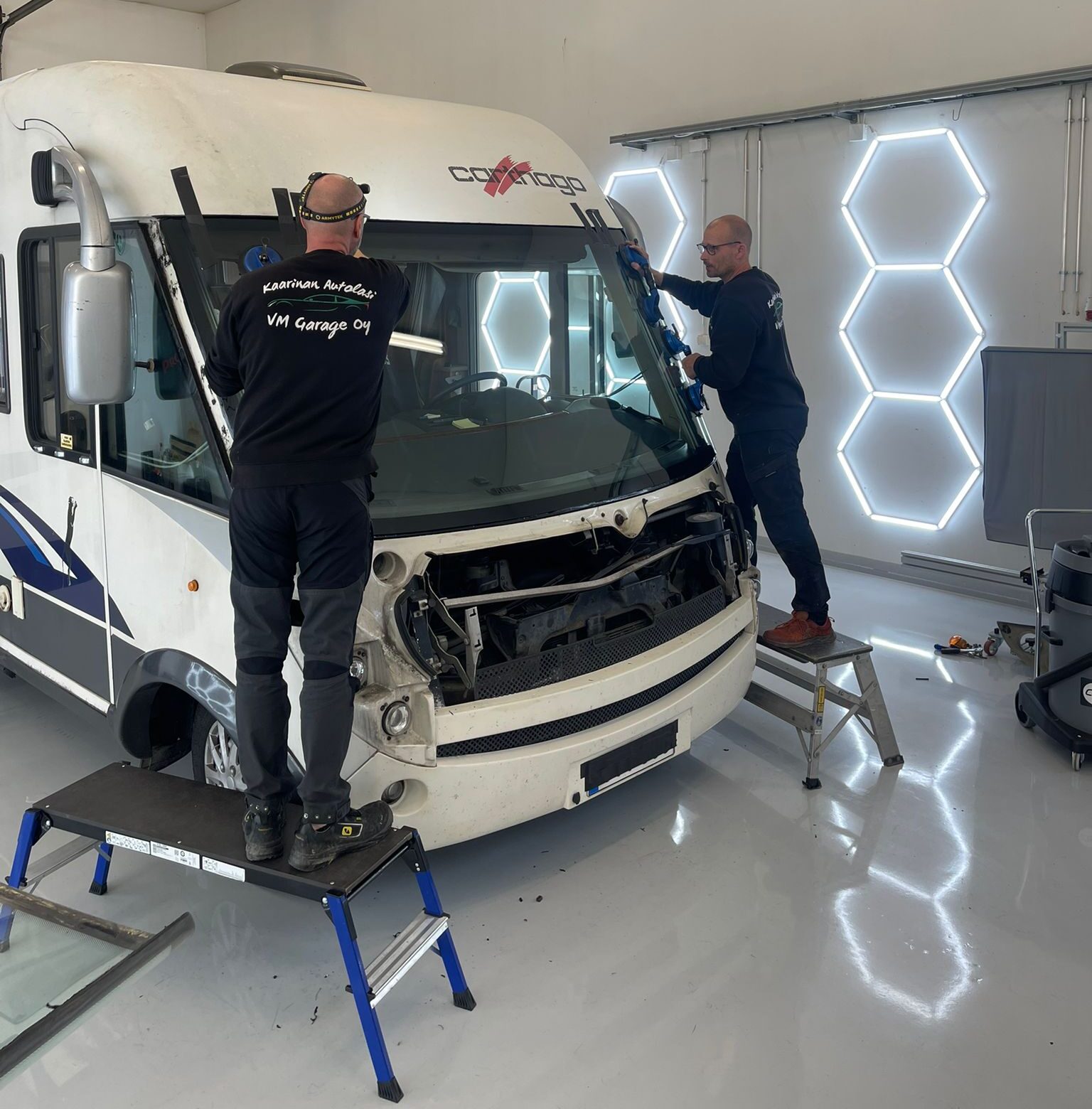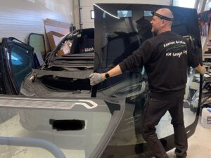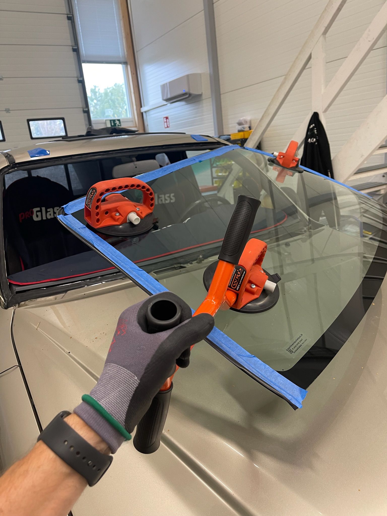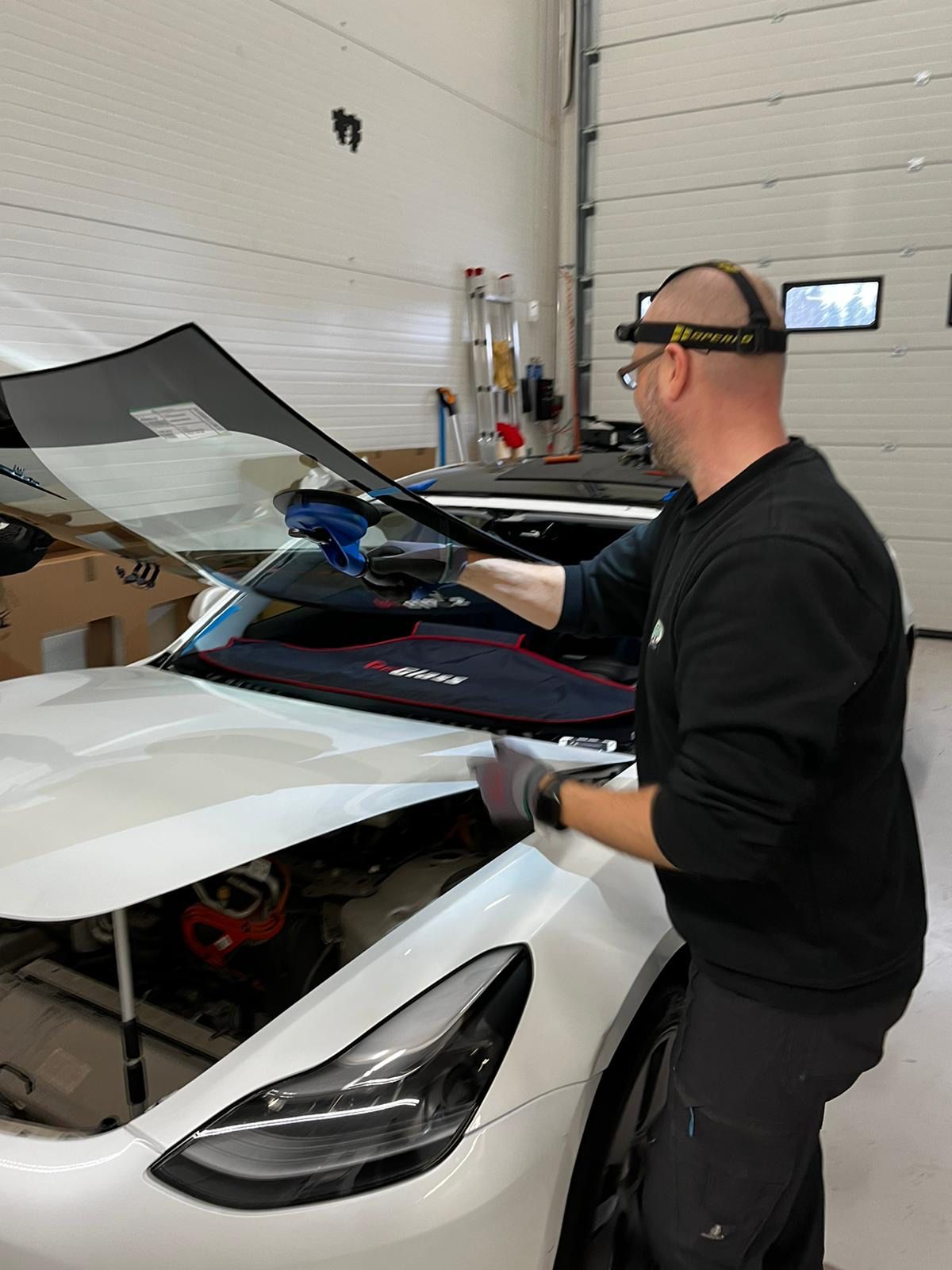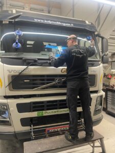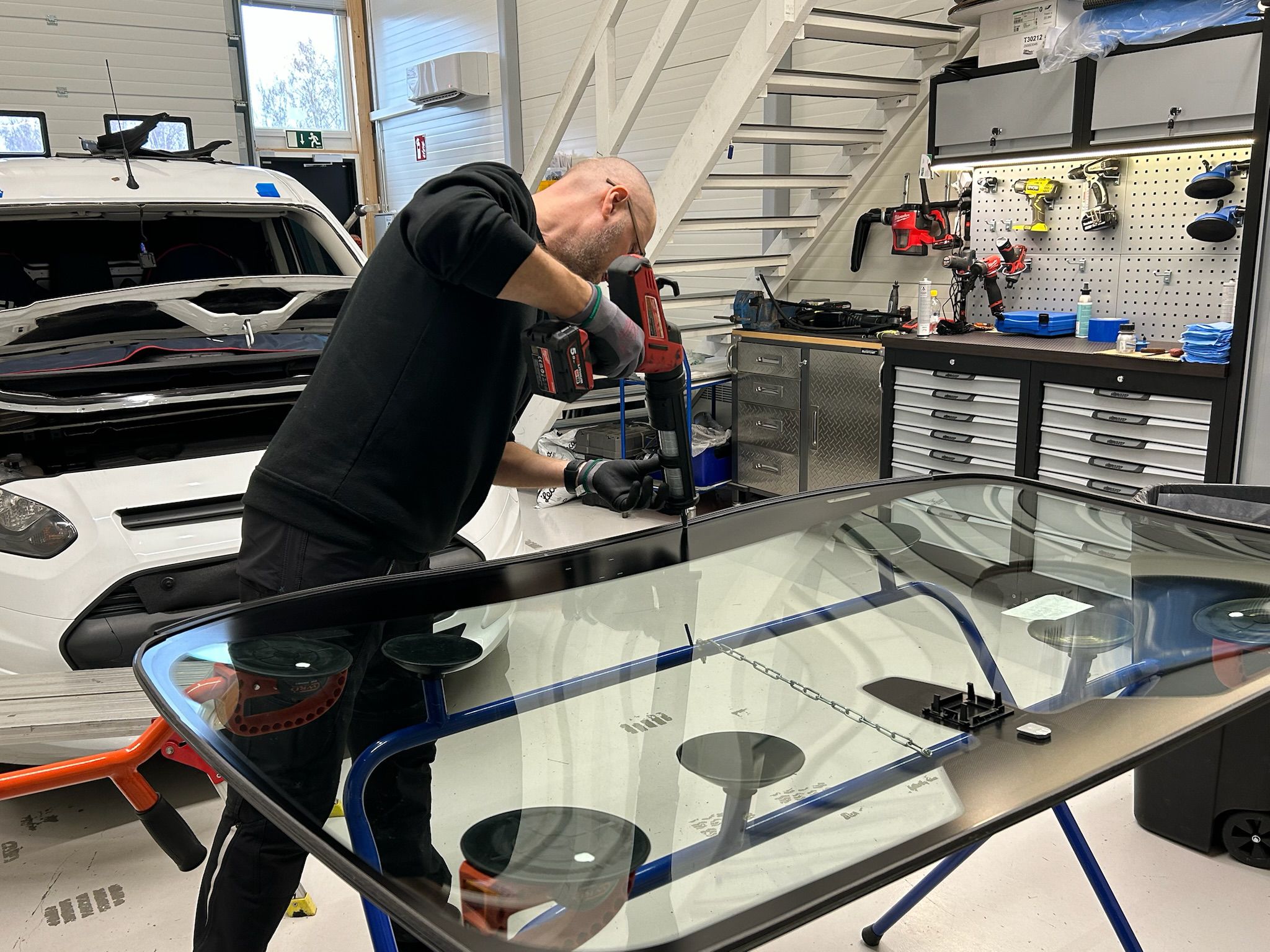 Marko vaihtamassa Turkulaisen asiakkaan tuulilasia